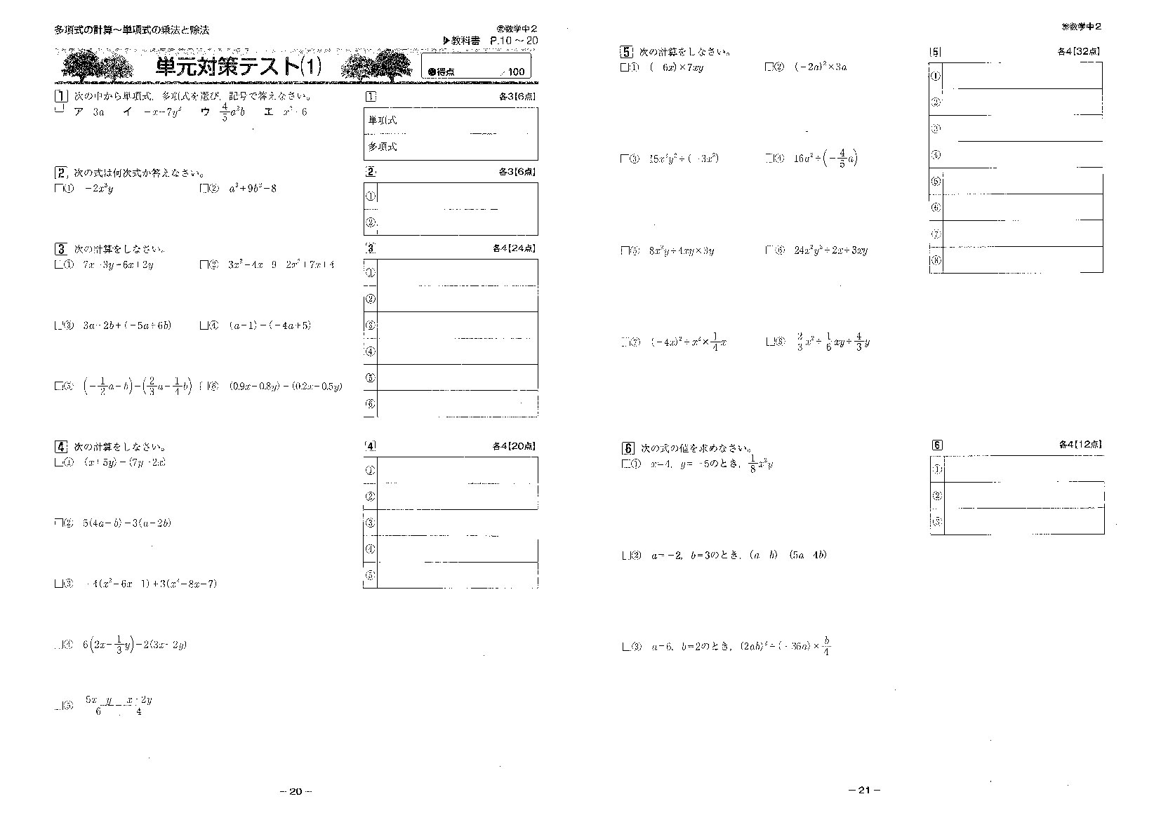 単元が一つ終わったら、「単元対策テスト」を行います。やってきた単元がしっかり理解できているかの力試しです。
