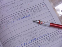 先生から 学習記録ノートを受け取ります。学習記録ノートにはその日にやるべき内容が、「数学 P.70~P.73→確認テスト13」のように書かれています。時々「残ったら宿題」って文字もあります(汗)。今日の日付と教科は毎回英語で書くことになっています。
